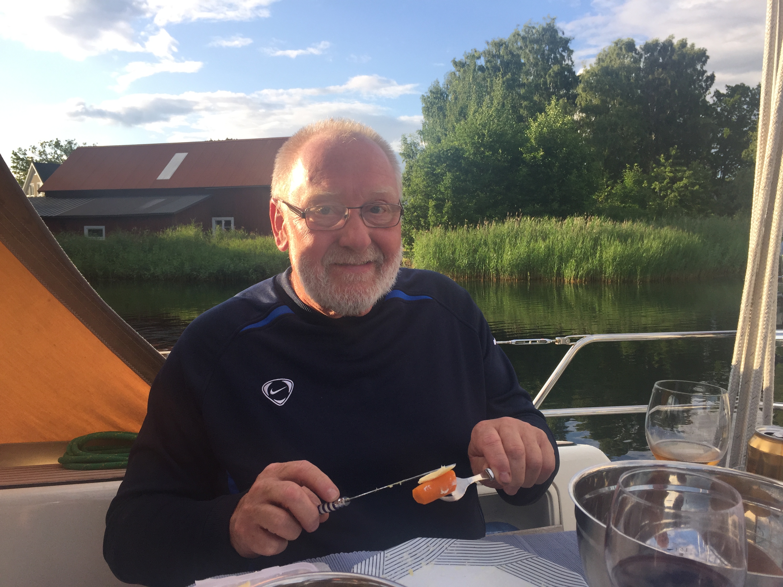 Angekommen in der netten Figeholm-Marina (ein Naturhafen in dem wir auch 2009 mit Zachmanns waren und Mittsommer gefeiert haben) hat Susi uns zum Abendbrot Pellkartoffeln mit Quark und viel Zwiebeln, Knoblauch und Gurke gemacht. War extrem lecker.
