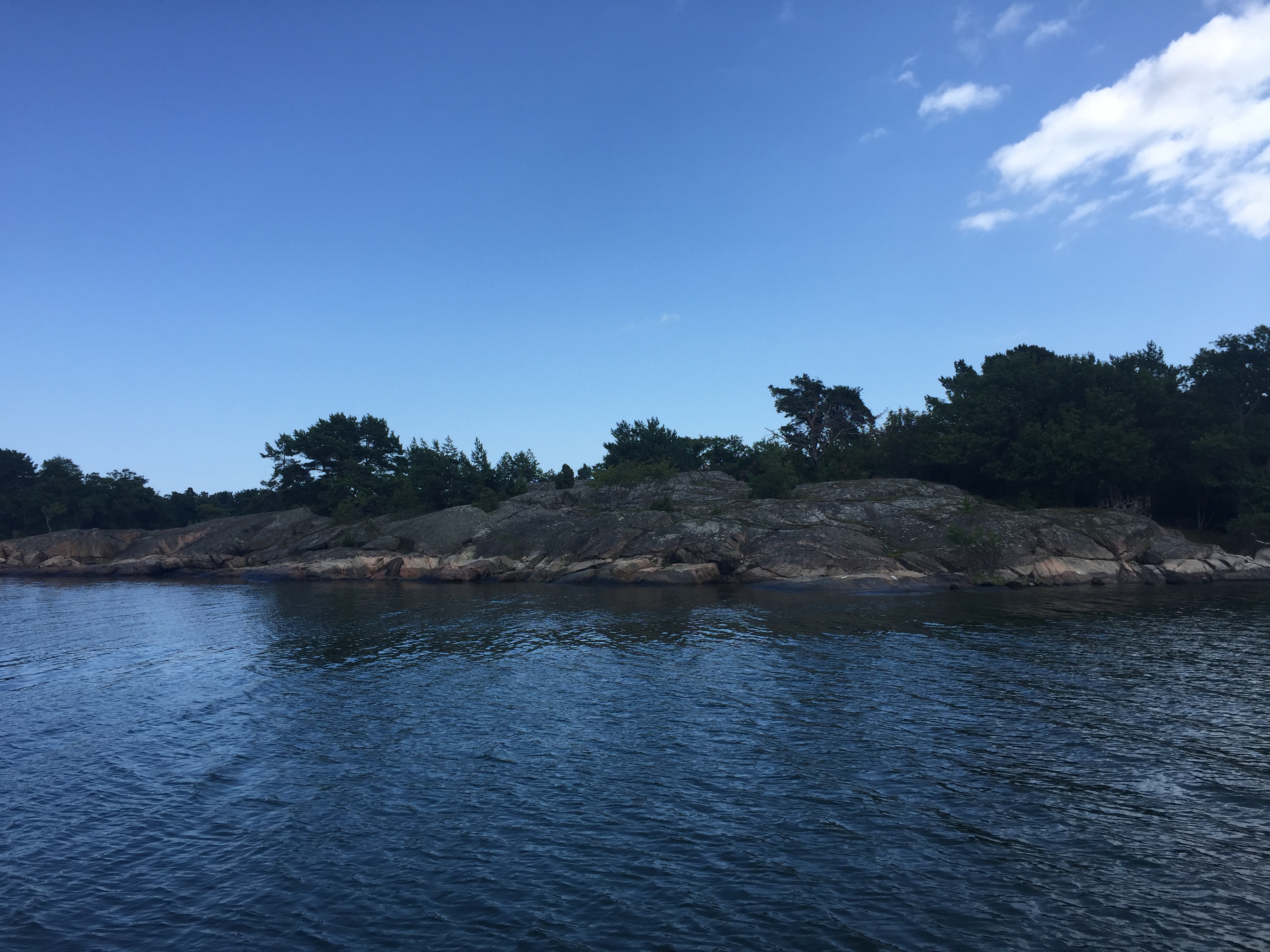 Aber die Natur ist hier umwerfend schön. Bei jedem neuen Inselchen staunt man wieder über die kunstvolle Platzierung der Bäume und Gräser zwischen den riesigen Granitfelsen. Es gibt hier als Wildwuchs Pflanzen die ich aus Deutschland nur aus Gärten kenne – Fette Henne, Wasserdost, Waldgeissbart, Wacholder uund viele andere mehr.